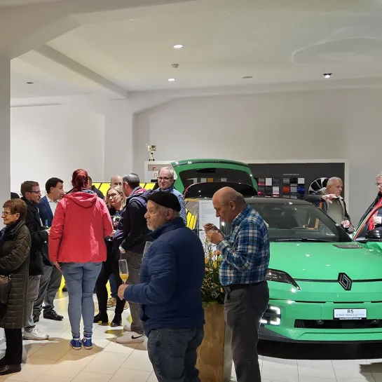 An unserem neuen Standort in Basel (St. Alban-Anlage 72) standen zwei Exemplare des brandneuen Renault 5 E-Tech, dem Car of the Year 2025, im Mittelpunkt. Die Gäste waren begeistert, das ikonische Modell mit modernster Elektrotechnologie aus nächster Nähe zu bestaunen. Der neu interpretierte Klassiker zog alle Blicke auf sich und sorgte für zahlreiche interessante Gespräche über die Zukunft der Mobilität.