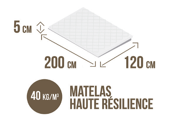- Matratze: hoher Komfort, hohe Belastbarkeit, 5.5 cm Dicke